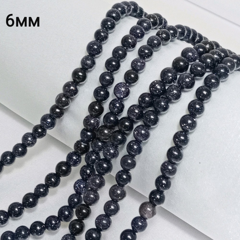 Бусины из синего авантюрина гладкие, диаметр 6мм, 63-65шт в нити.
