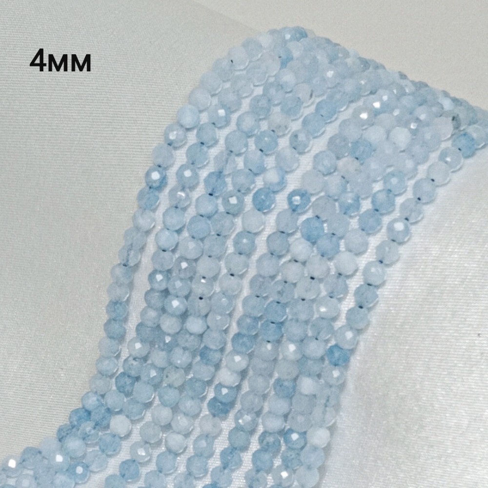 Бусины из аквамарина граненые, диаметр 4мм, 103-105шт в нити.