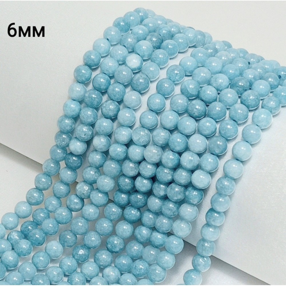 Бусины из аквамарина гладкие, диаметр 6мм, 66шт в нити.