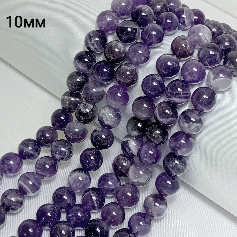 Бусины из аметист гладкие, диаметр 10мм, 37шт в нити.