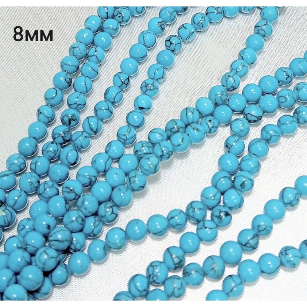 Бусины из бирюзы (искусственный камень), диаметр 8мм, 48шт в нити.