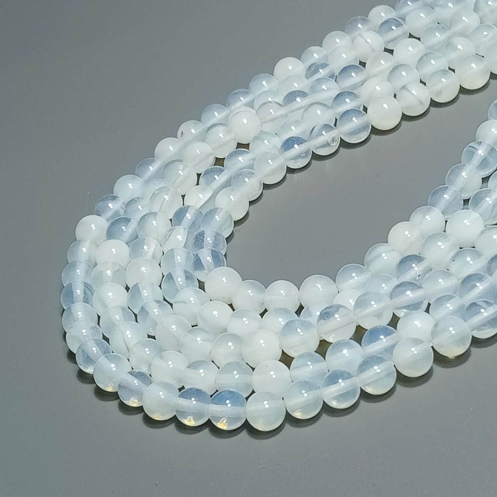 Бусины из лунного камня (искусственный камень), диаметр 6-6.5мм, 59шт в нити.