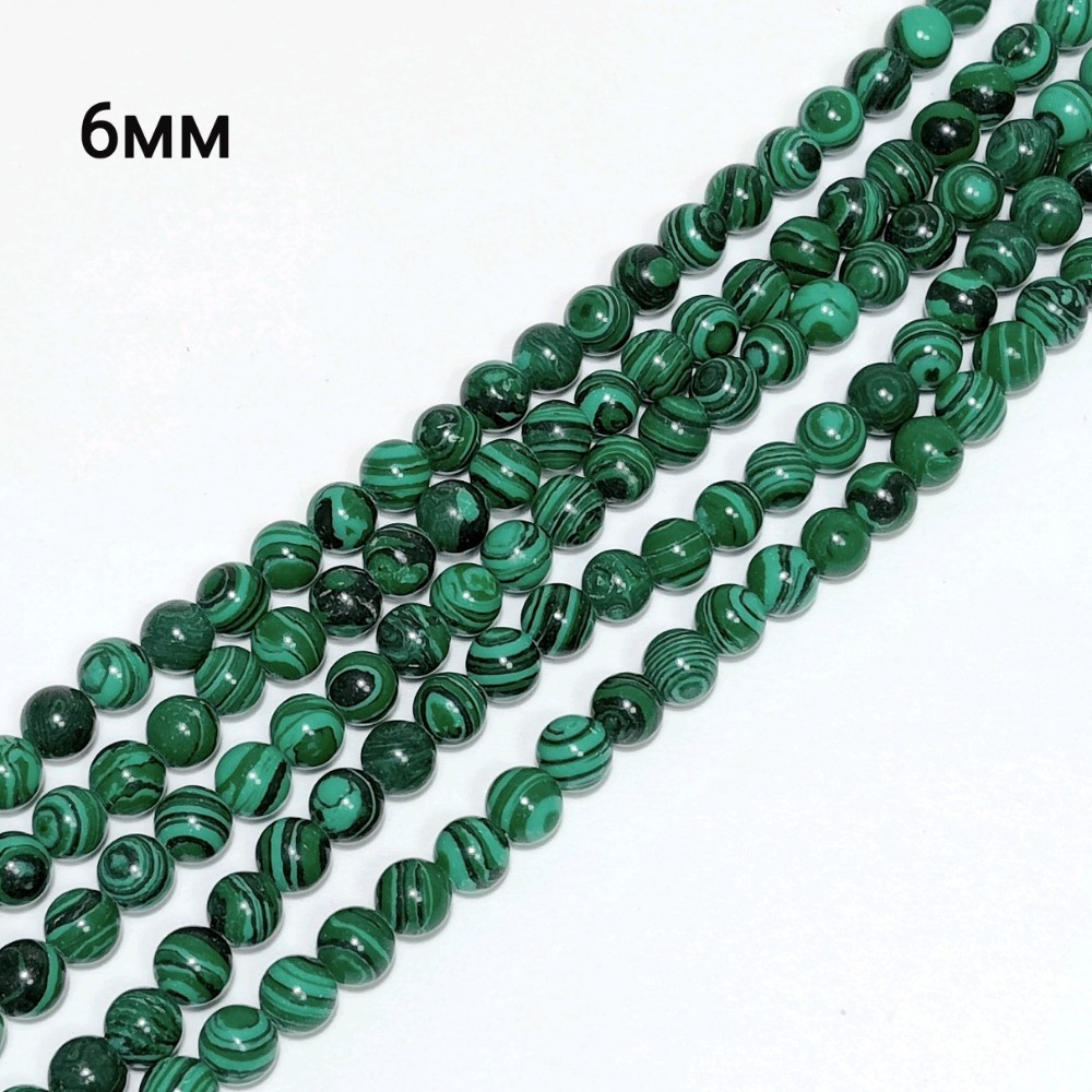 Бусины из малахита (искусственный камень), диаметр 6мм, 65шт в нити.