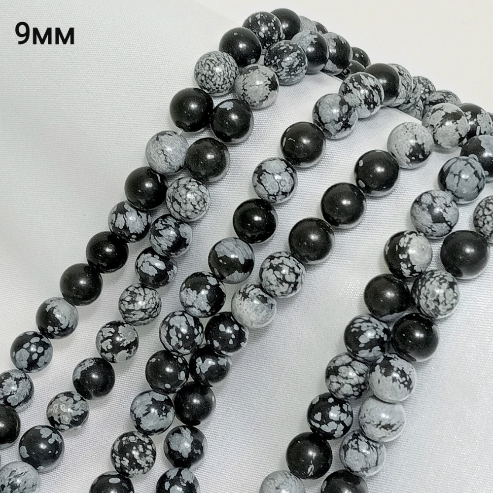 Бусины из обсидиана гладкие, диаметр 9мм, 45шт в нити.