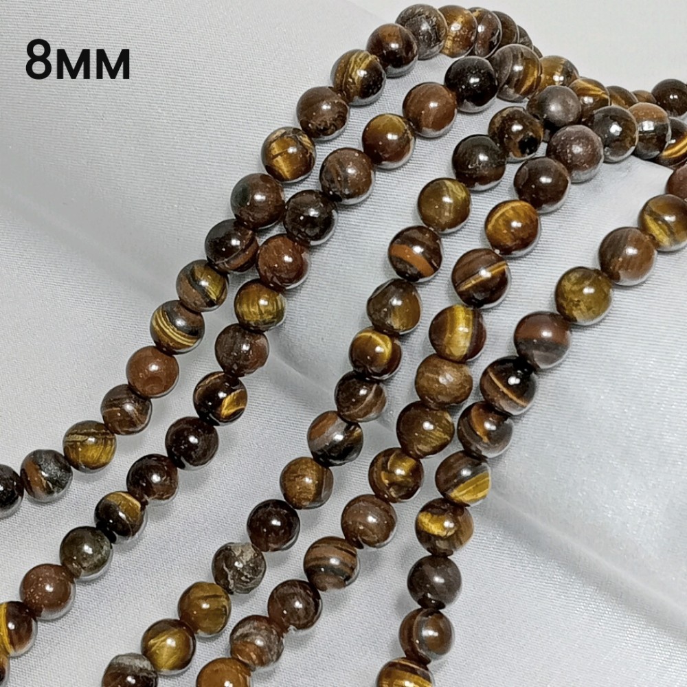 Бусины из тигрового глаза гладкие, диаметр 8мм, 50шт в нити.