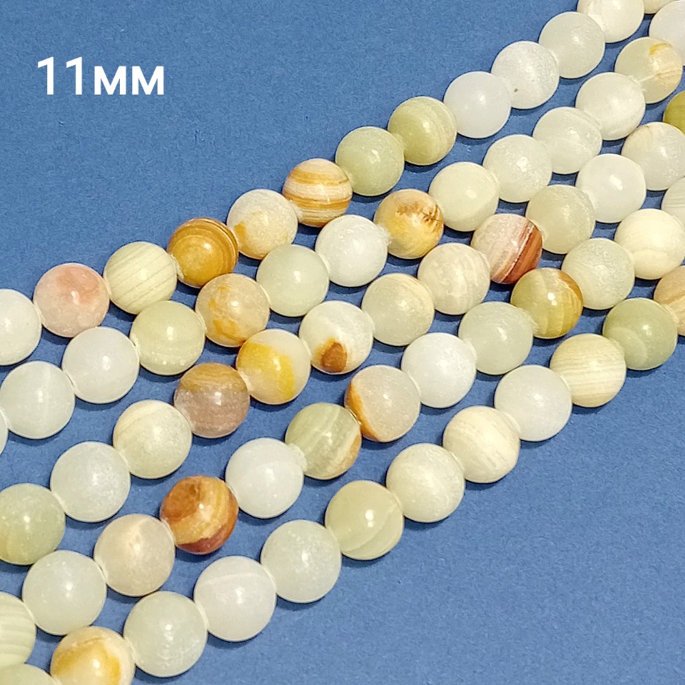 Бусины из оникса гладкие, диаметр 11мм, 36шт в нити.