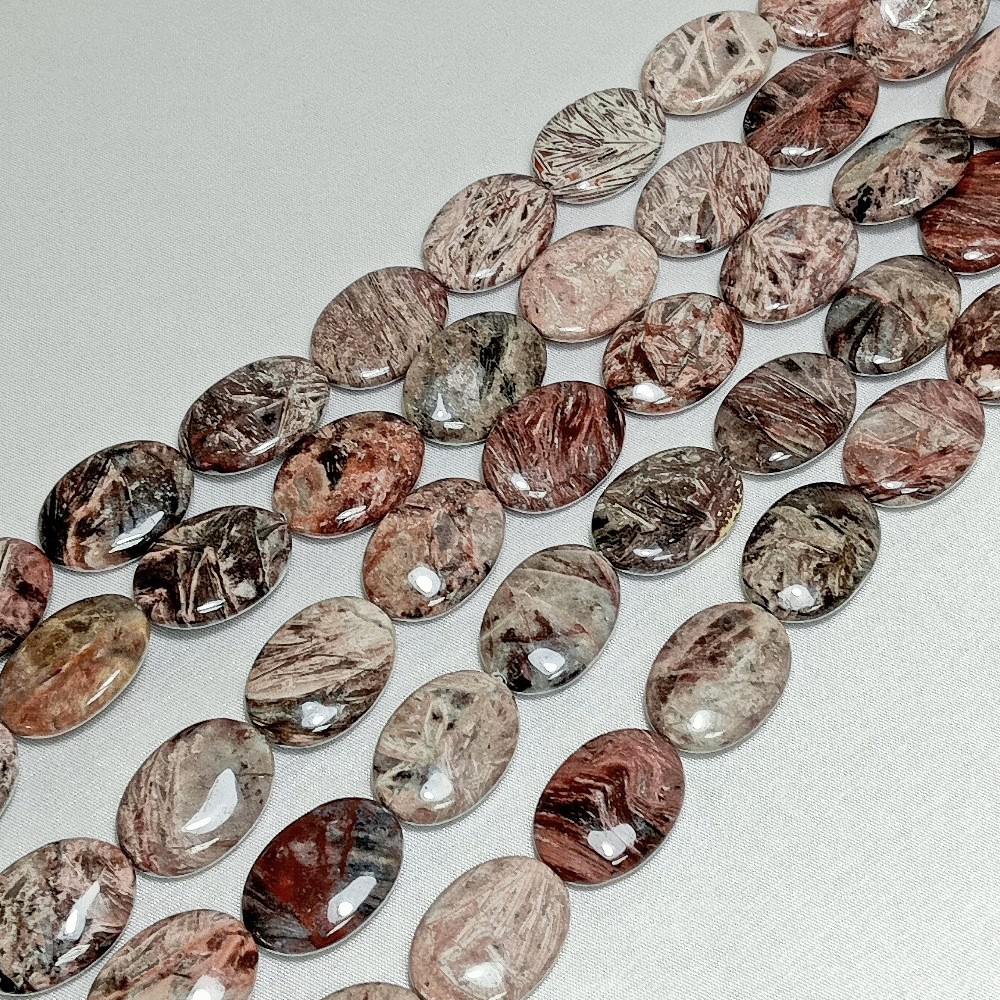 Бусины из брекчиевой яшмы овальные, 18х25мм, толщина 6мм, 16шт в нити.