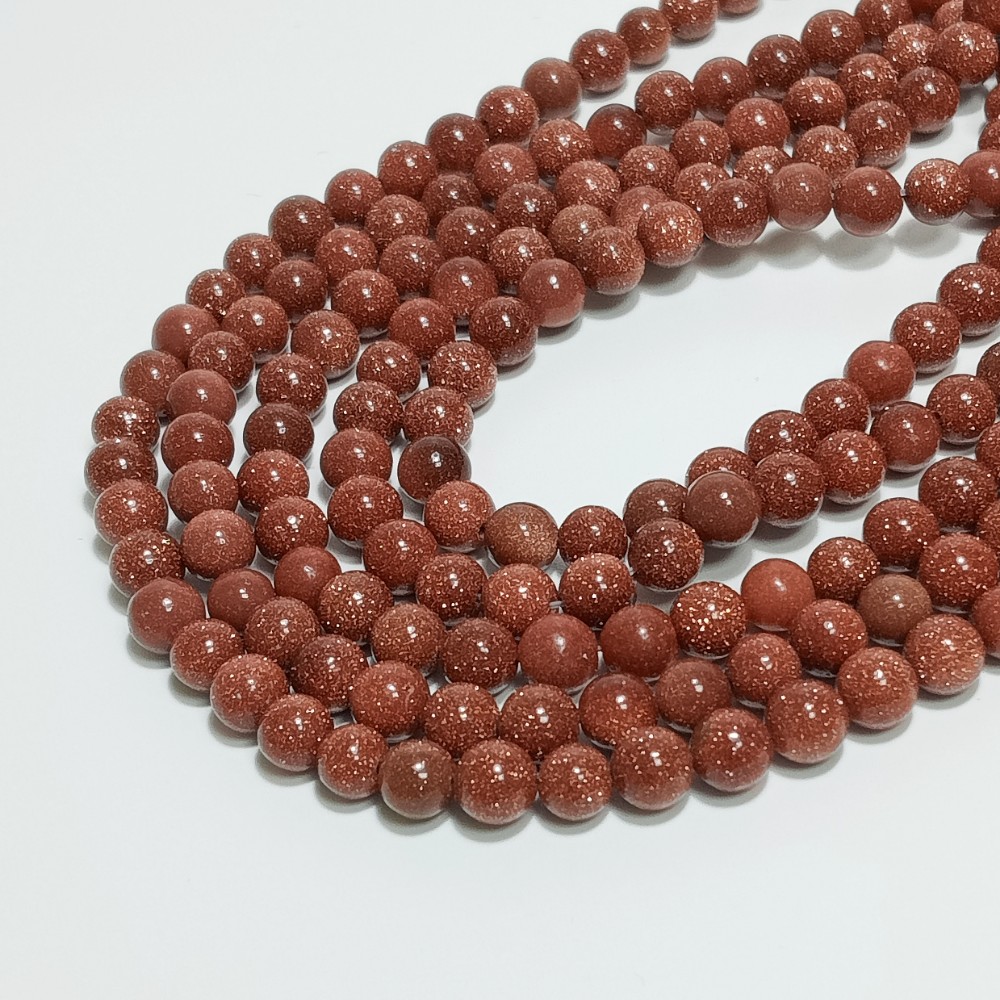 Бусины из искусственного авантюрина "Золотой песок" гладкие, диаметр 8мм, 47шт в нити.