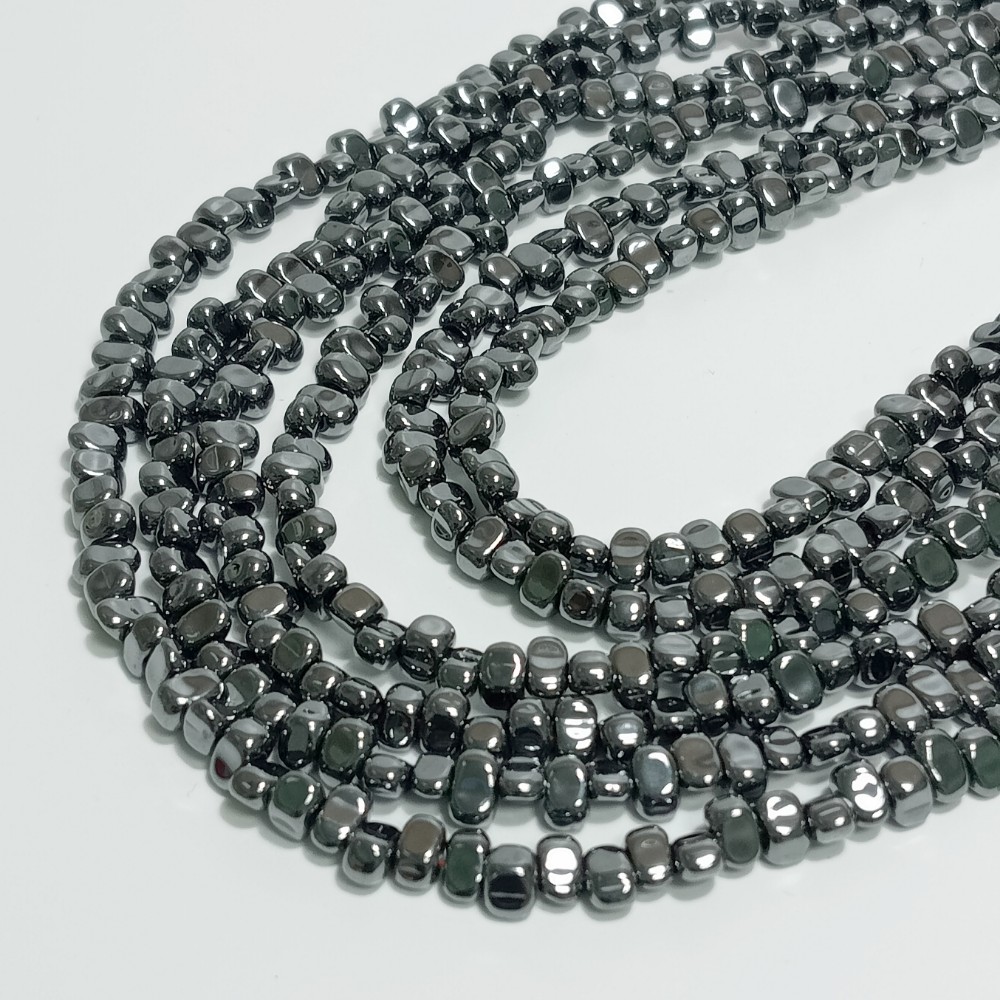 Бусины из гематита? галтовка, размер 4х6мм, 114шт. в нити