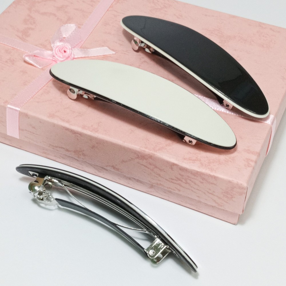 Подвижная часть застежки имеет резиновой покрытие для уменьшения повреждения волос при носке.