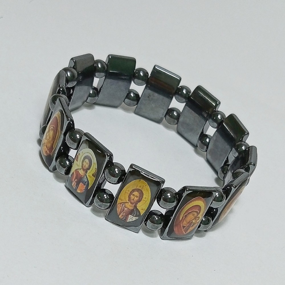 Браслет из гематита с иконками, арт. 21107