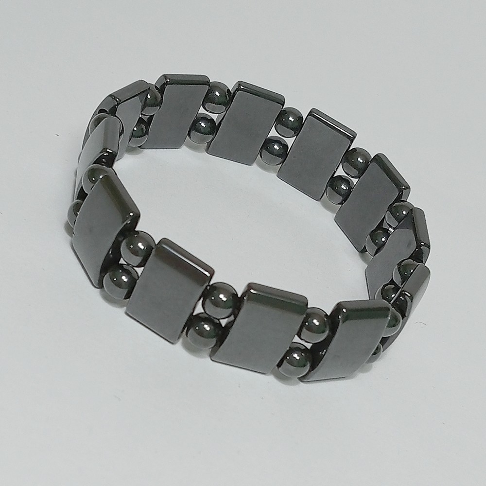 Браслет из гематита, ширина звена 17мм. Собран на резиночках, растягивается.