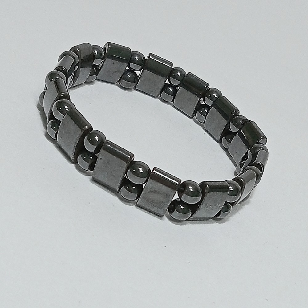 Браслет из гематита, ширина звена 13мм. Собран на резиночках, растягивается.