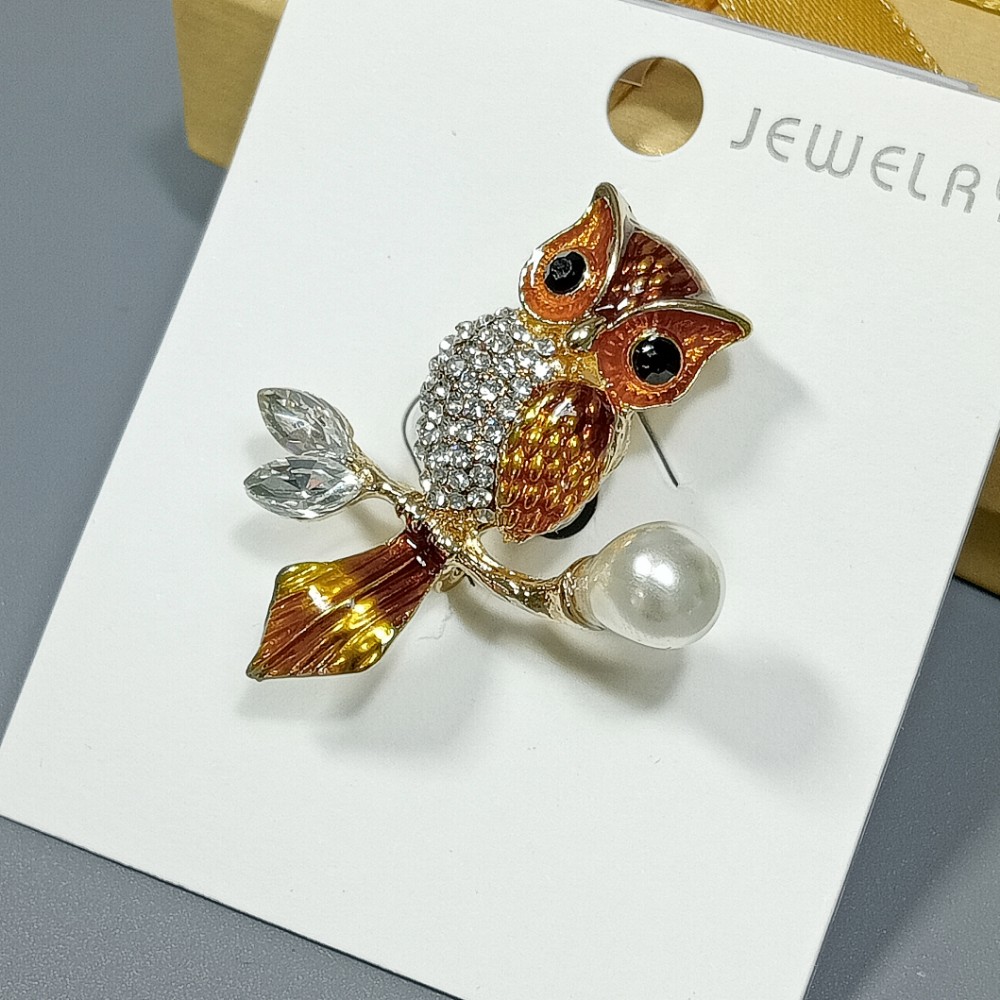 Брошь арт. 27377 (металл, стразы, эмаль, иск. жемчуг), 3.6х4см