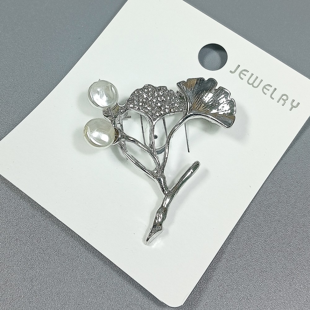 Брошь арт. 27401-1 (металл, стразы, иск. жемчуг), 4х4.3см