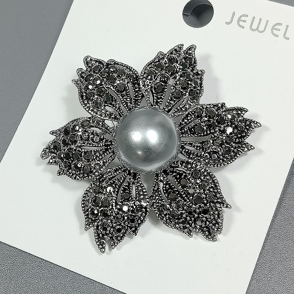 Брошь арт. 27400 (металл, стразы, иск. жемчуг), 4.8см