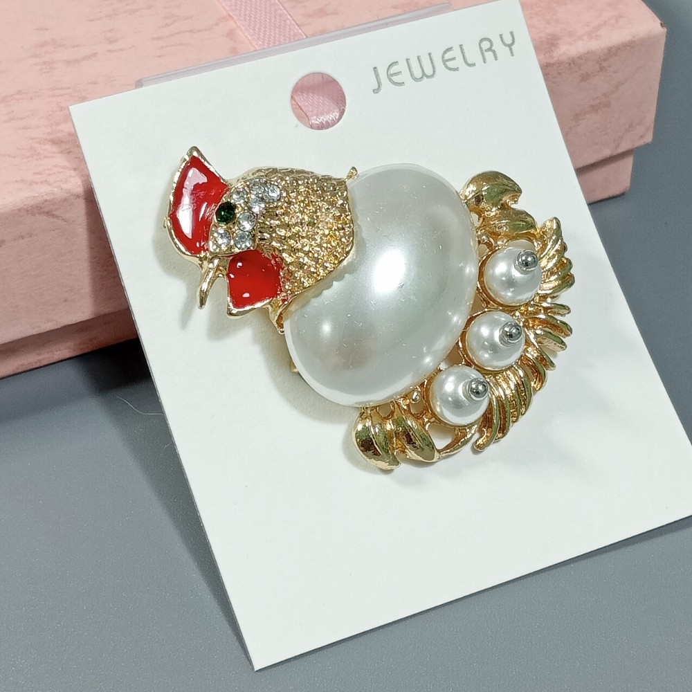 Брошь арт. 27292 (металл, стразы, эмаль, иск. жемчуг), 3.8х5.2см