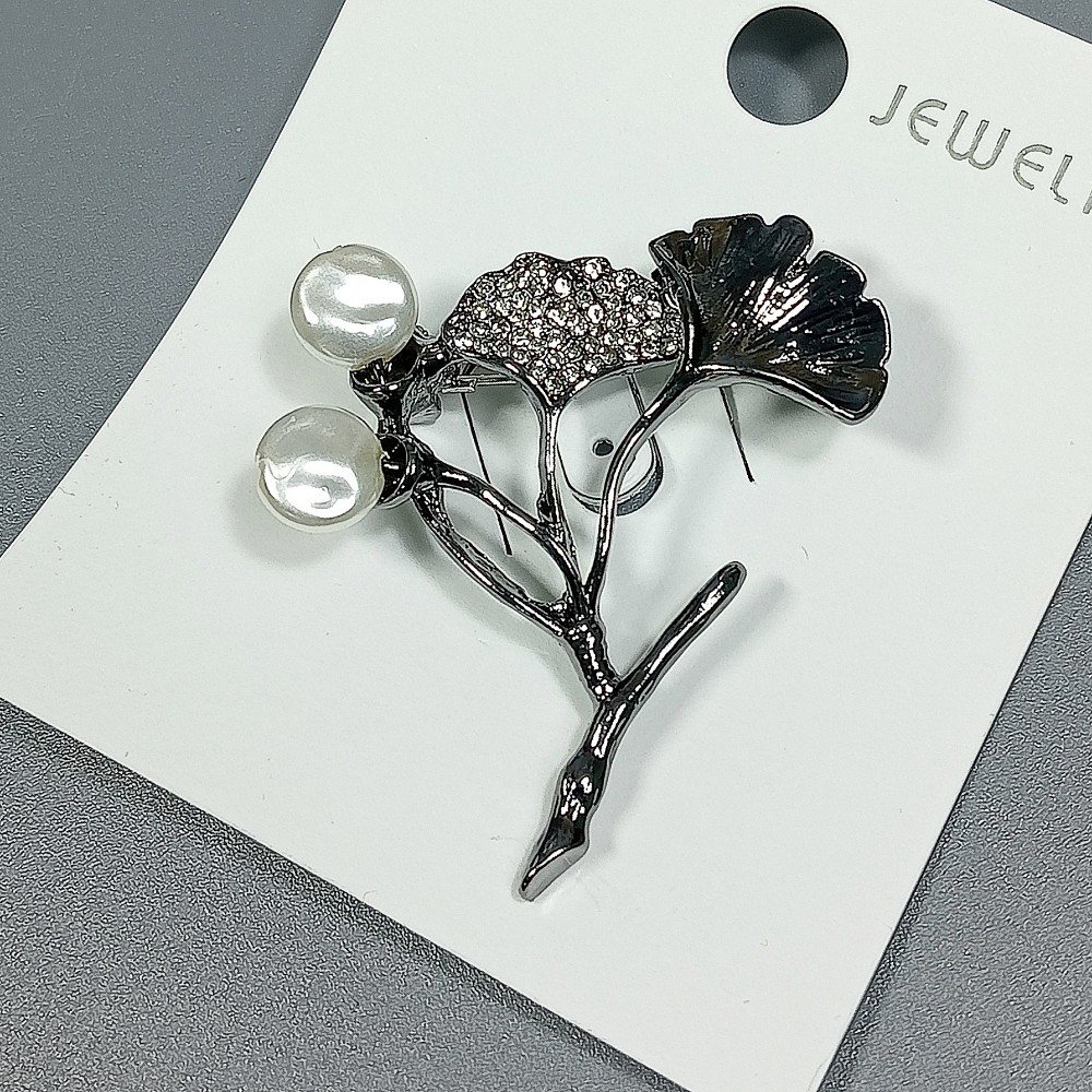 Брошь арт. 27401-2 (металл, стразы, иск. жемчуг), 4х4.3см