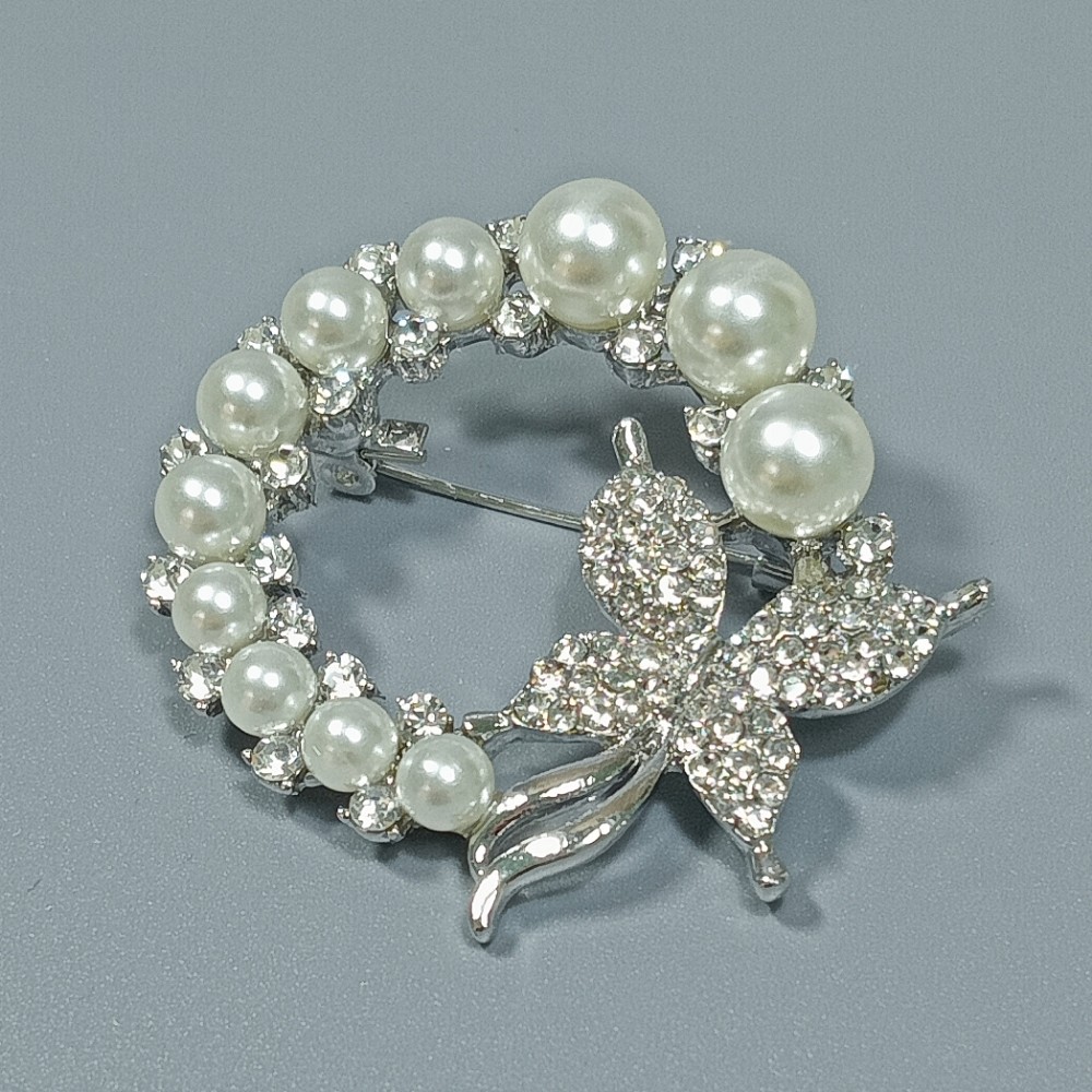 Брошь арт. 27378 (металл, стразы, эмаль, иск. жемчуг), 4см