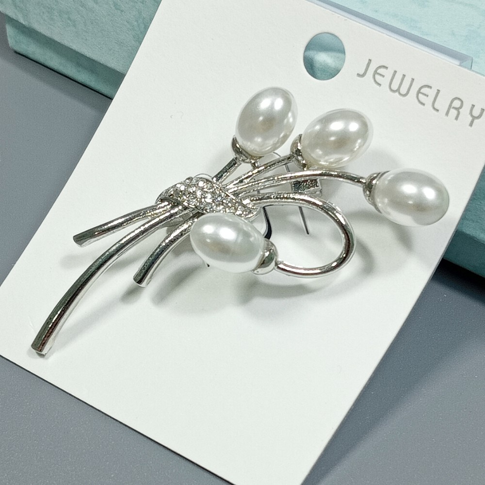 Брошь арт. 2737 (металл, стразы, иск. жемчуг), 2.5х6.5см