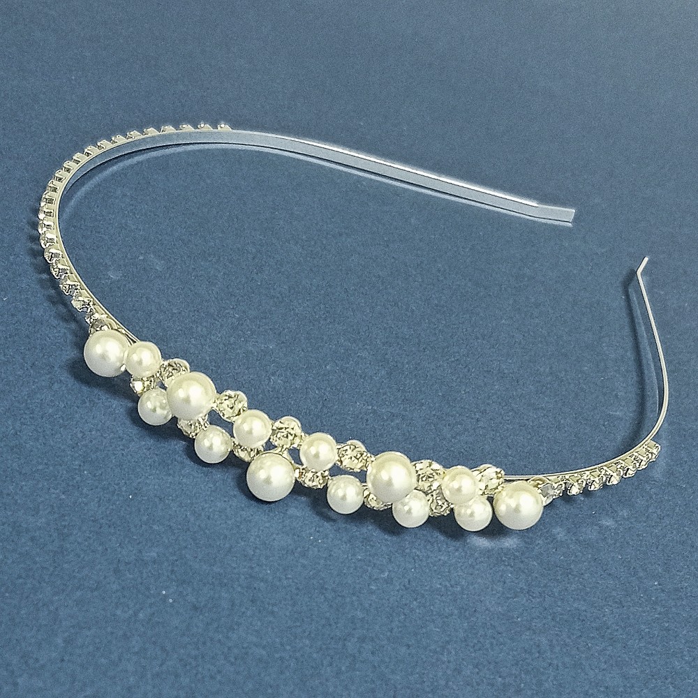 Ободок металлический со стразами и жемчугом, арт. 13117