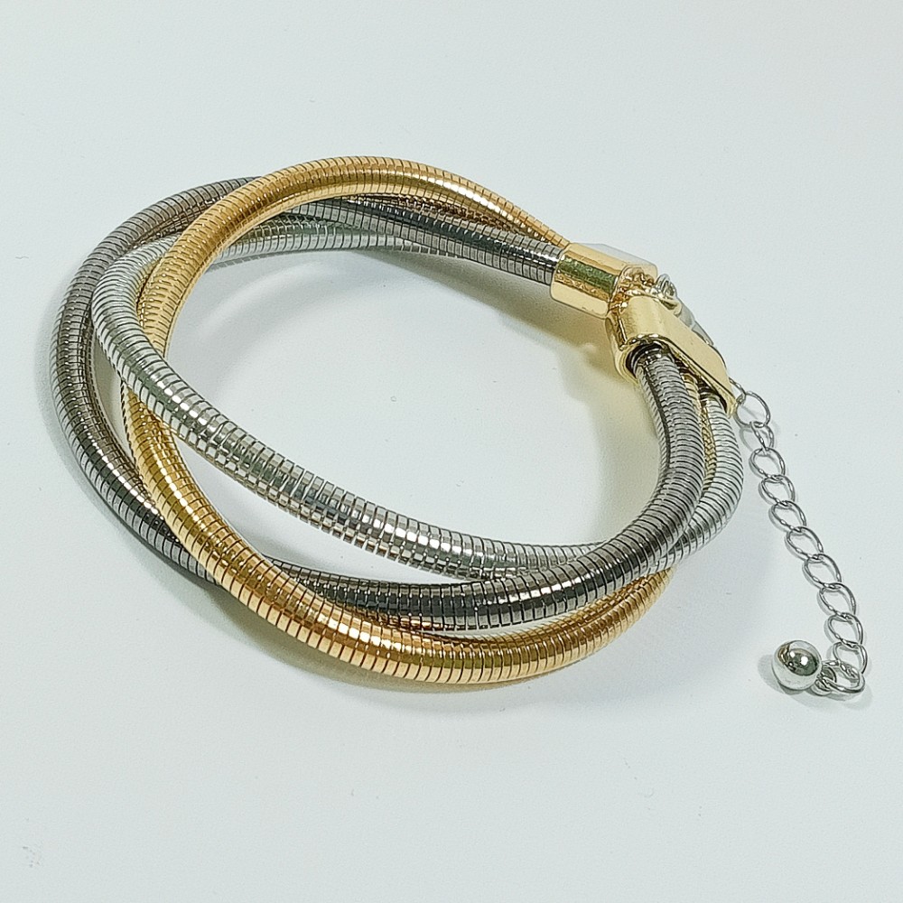 Браслет металлический гибкий, трёхцветный. Застежка - карабин.