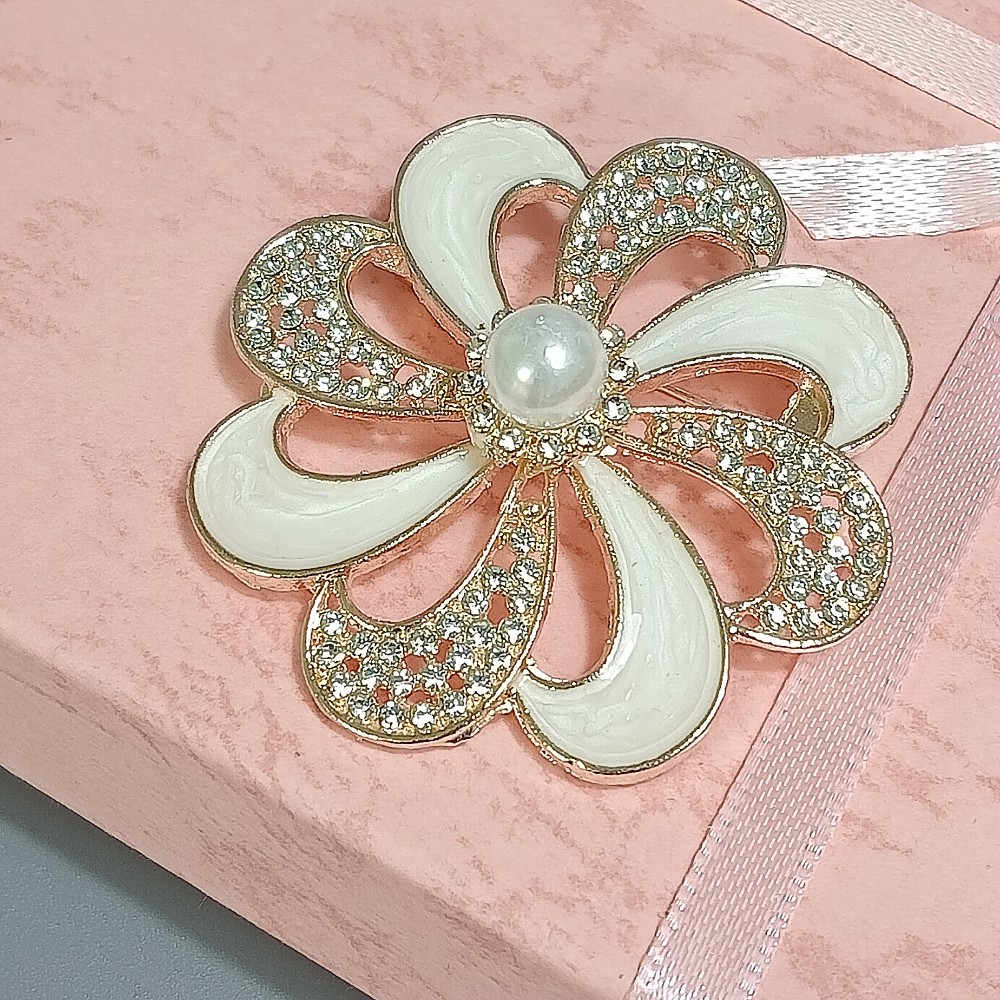 Брошь арт. 27421-2 (металл, стразы, эмаль, иск. жемчуг), 4.7см