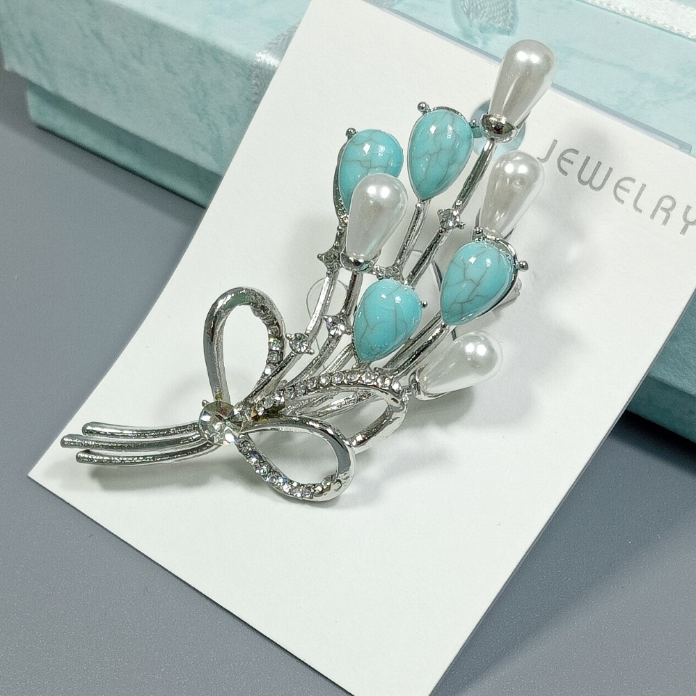 Брошь арт. 2750 (металл, стразы, иск. жемчуг), 3.3х7см