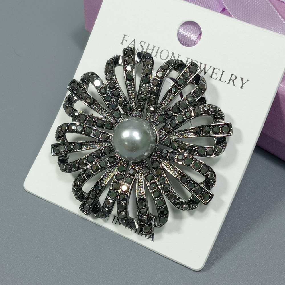 Брошь арт. 27136 (металл, стразы), 4.7см