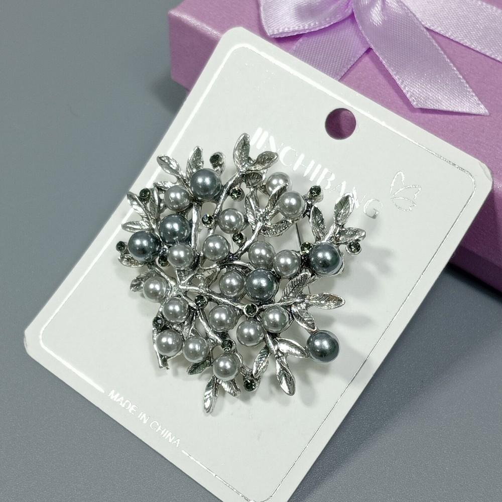 Брошь арт. 27161 (металл, стразы, иск. жемчуг), 5см