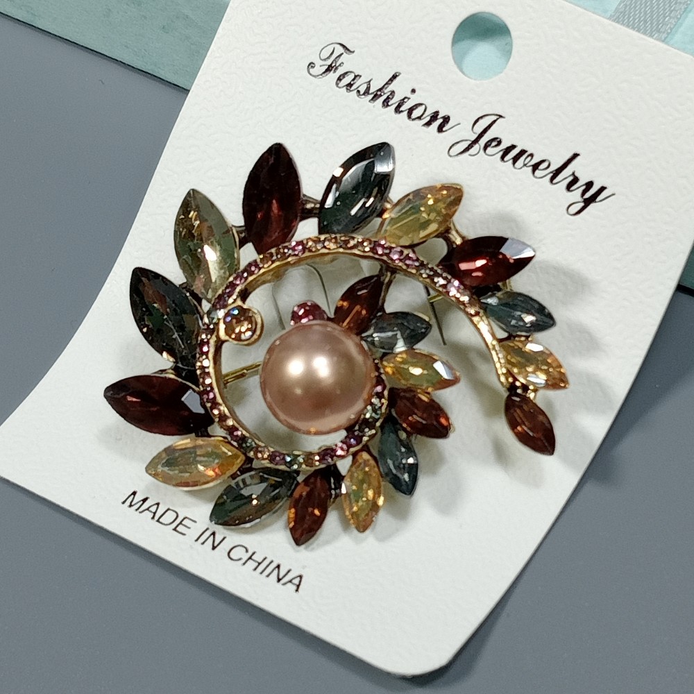 Брошь арт. 27252 (металл, стразы, иск. жемчуг), 4х4.6см