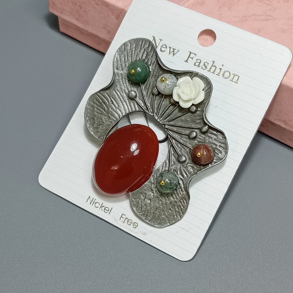 Брошь арт. 27121-3 (металл, иск. камень), 6х4.5см